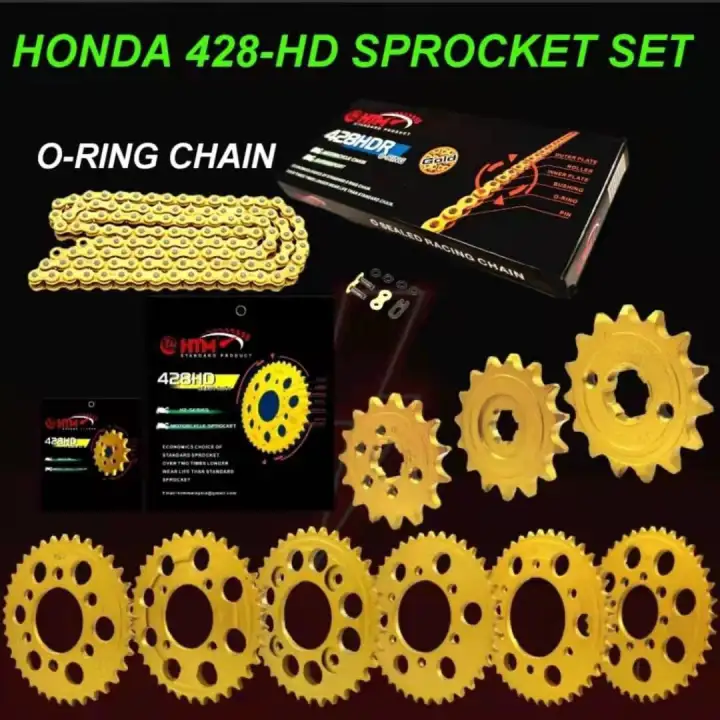 WAVE125 WAVE110 FUTURE125 DASH110 DASH125 WAVE100R HONDA ( 428 HDR 428HDR ORING O-RING O RING GOLD SPROCKET AND CHAIN SET HTM "GENUINE PART" ) WAVE